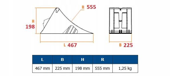 Promień R: 555 mm